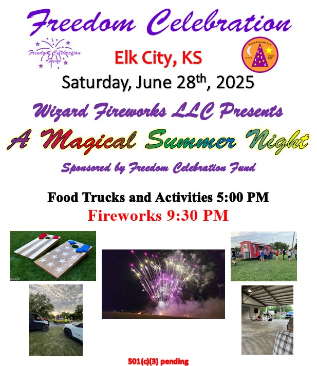 Join us at Freedom Celebration to experience the magic of fireworks and the joy of community spirit. Together, we celebrate freedom and unity in Elk City, KS.